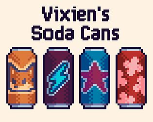Pixel art soda can pack with 64 unique designs and multiple viewing angles. Ideal for inventories, props, and 2D games.