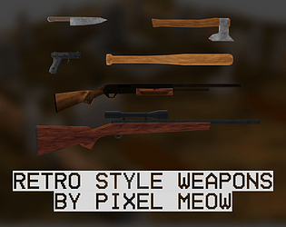 Asset pack with various types of PSX style guns (AK, shotgun, and pistols)