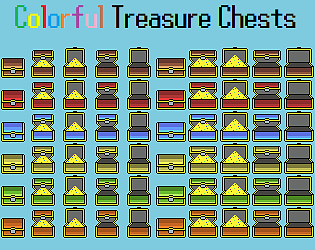 Includes 10 different colored regular and large treasure chest sprites . 100 sprites total (for animation)