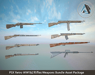 A retro-styled bundle of low-poly WW1 and WW2 rifles, perfect for PSX-inspired or low-poly games.