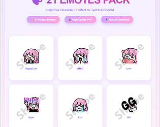 21 unique Kawaii emotes. Ready for Twitch & Discord