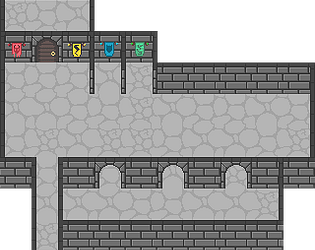 A small package of 32x32 bit style dungeon walls, floors, and a few flags.