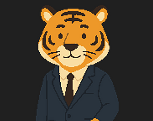 A set of 6 business-themed tiger characters in 4 sizes, all true grid-aligned pixel art.