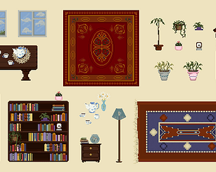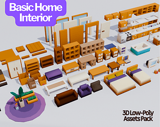 Small asset pack includes apartment furniture, funny characters and UI design.