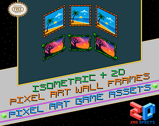 Isometric And 2D Pixel Frames Wall Paintings Tilesets