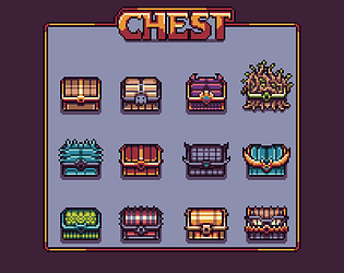 12 pixel chest sprites in 32Γ32 resolution. Perfect for RPG loot, treasure systems, or inventory icons.