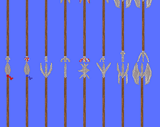 A collection of pixel art spears, perfect for RPGs and adventure games.