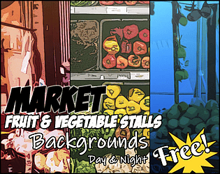 Free vegetable and fruit marketplace and grocer stalls visual novel background set. Has day and night versions.