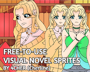 Full sprite pack with happy, sad, and shy expressions—free for visual novels, dating sims, and story-driven games.