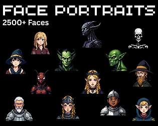 2,500+ RPG face portraits in manga/cartoon style — humans, elves, dwarves, demons, orcs, mages, rogues & more.