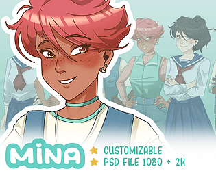 Cute girly sprite with multiple emotions and styles, PSD included!
