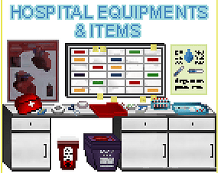 A free pixel art pack of Hospital themed items and equipments, ready to drop into your 2D game projects.