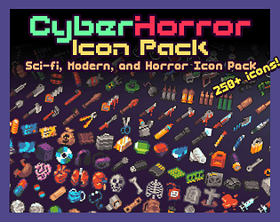 Icon Pack with 250+ icons for sci-fi, modern, and horror projects. The Iconset has guns, survival items, food, and more!