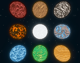 A complete pixel game template for merging space objects like asteroids, moons, and planets using space vortexes.