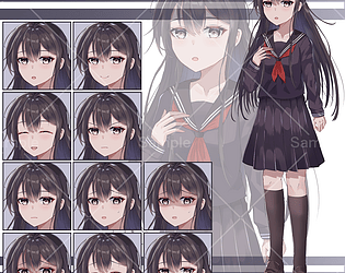 Anime-style schoolgirl sprite pack with 10 facial expressions (PNG transparent)