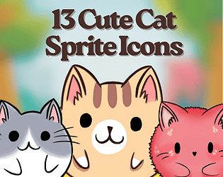 13 adorable hand-drawn cat sprite icons for your games & projects.