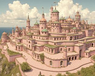 Sunny JRPG-style fantasy city backgrounds for visual novels, RPGs and stream overlays.