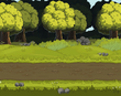 Forest tile set with 6-layered parallax scrolling background and animated character