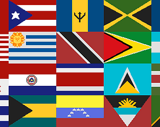 pixel art flags representing countries across the Americas.