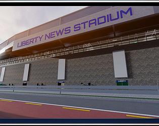 Massive and realistic football stadium with full interior, lighting, and city surroundings