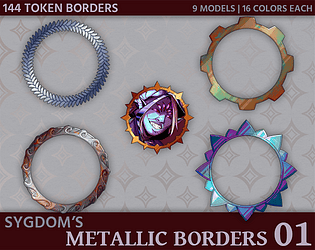 12 metal token borders, Gold, Silver, Copper, and Iron along with enameled metal in 8 colors. 1024x resolution.