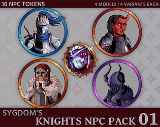 A collection of 16 handdrawn Knight themed Tokens for use in TTRPGs, specially in Virtual Tabletops (VTT)