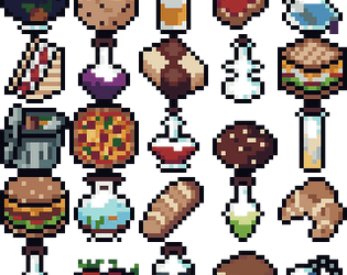 32 unique sprites including swords, pickaxes, axes and hoe's (8 of each)