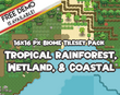 A huge collection of hand-drawn 16-bit-style pixel art tilesets for an SNES-inspired RPG or adventure game.