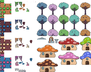 Lil' Free Asset Pack. Complete with a tile set, backgrounds, towns, and an animated player.