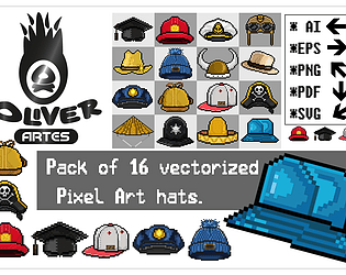 Pack of 16 editable vector pixel art hats, Vector Pixelarte.