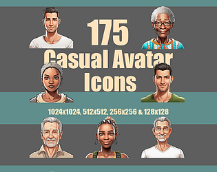 175 versatile 2D Casual Avatar icons in semi-realistic cartoon style with transparent backgrounds. PNG Format.