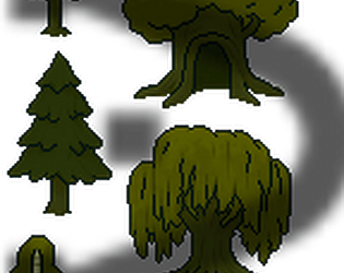 A tileset of 220 tiles of rocks and trees for marshlands or swamps.