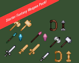 A small 2d pixel art weapon pack with some basic weapons you can use in your game!