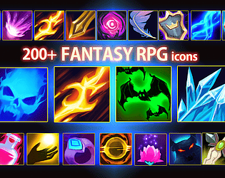 The pack contains 200 unique skill icons for fantasy and medieval-themed games