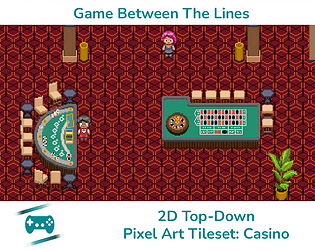 Contains 2 variants of the same tileset (regular & condensed) with animated sprite sheets for props like slot machines.