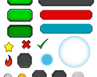 Conjunto de assets composto por botões de controle, botões de stast, select, entre outros diversos botões.