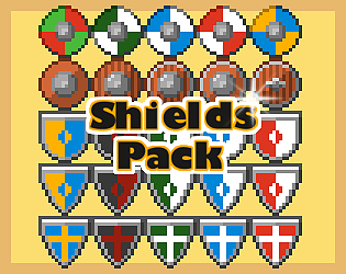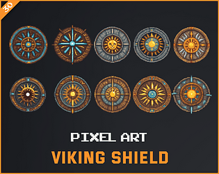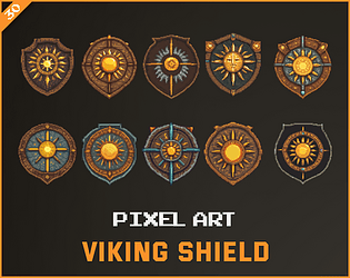 A downloadable pixel-art asset pack with 30+ uniques Viking Svalinn shield