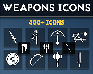Over 400 Flat Weapons Icons (419 elements in total) suitable for RPG, fantasy, medieval inventory.