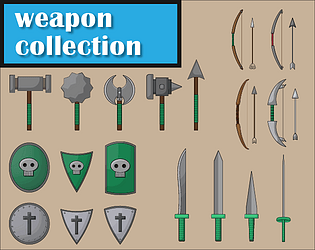 Arrow Axe Shield Bow Mace Club Dagger Grenade Gun Hammer Spears Sword Staff