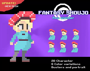 2D pixel art character sprites for fantasy RPGs. Includes female variants, portraits, and battle animations. Scythe girl