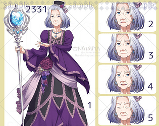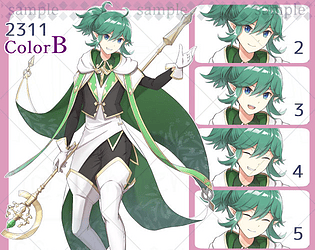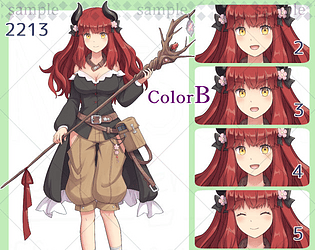 Anime Character Art Pack: 2213-colorB - 6 Expressions | Image: Woman, adventurer, beastman, dragon