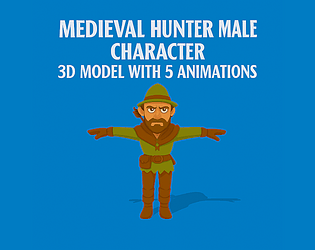 3D Medieval Hunter Male Character Rigged Pack – 3D Model with Walk, Run, Jump, Kick & Die Animations