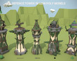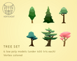 Low poly forest 3d models. Trees, platforms, camping gear, rocks, grass and more.