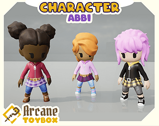 A cute  3d game character in a fun, toony style, complete with accessories and packaging!
