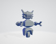 A stylized, low poly robot inspired by the charm of real axolotls and the retro look of Nintendo 64 games