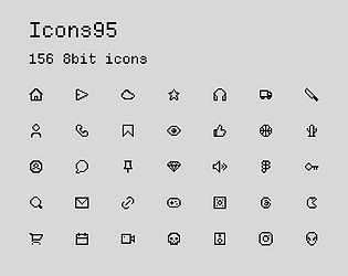156 pixel perfect icons in the 8bit/pixel art style. Great to create a lofi/retro visual style.