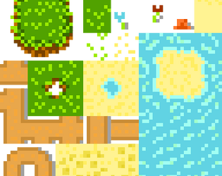 Charming 8x8 tileset. Over 230 tiles + 30 props X 2 color palettes