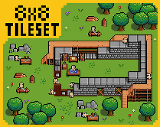 Charming 8x8 tileset for creating from small wayside shrines to imposing temples