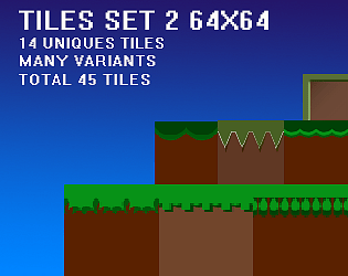 Tiles set 2 64x64, 14 uniques tiles, many variants, total: 45 tiles