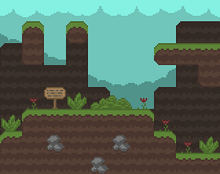A pixelart tileset inspired by modern day platformers in a grassland or forest environment.